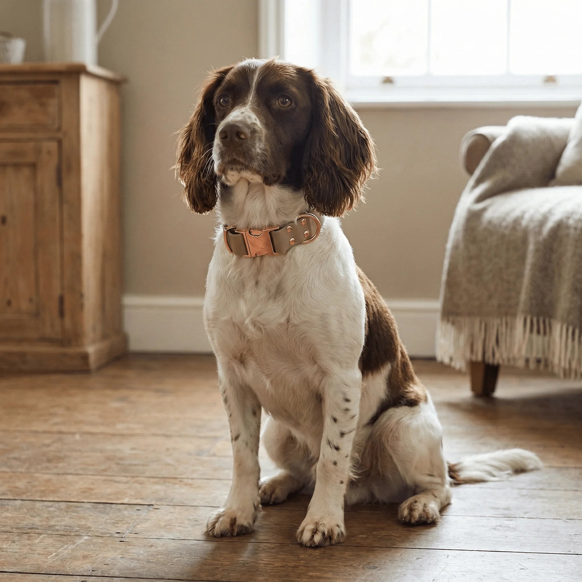 The Beige Waterproof Biothane Clasp Dog Collar is natural and understated – perfect for everyday walks and weekend adventures. Handmade in Yorkshire, it combines waterproof strength with a quick-release metal clasp for easy on/off. Odour-resistant, durable, and comfortable for daily wear.