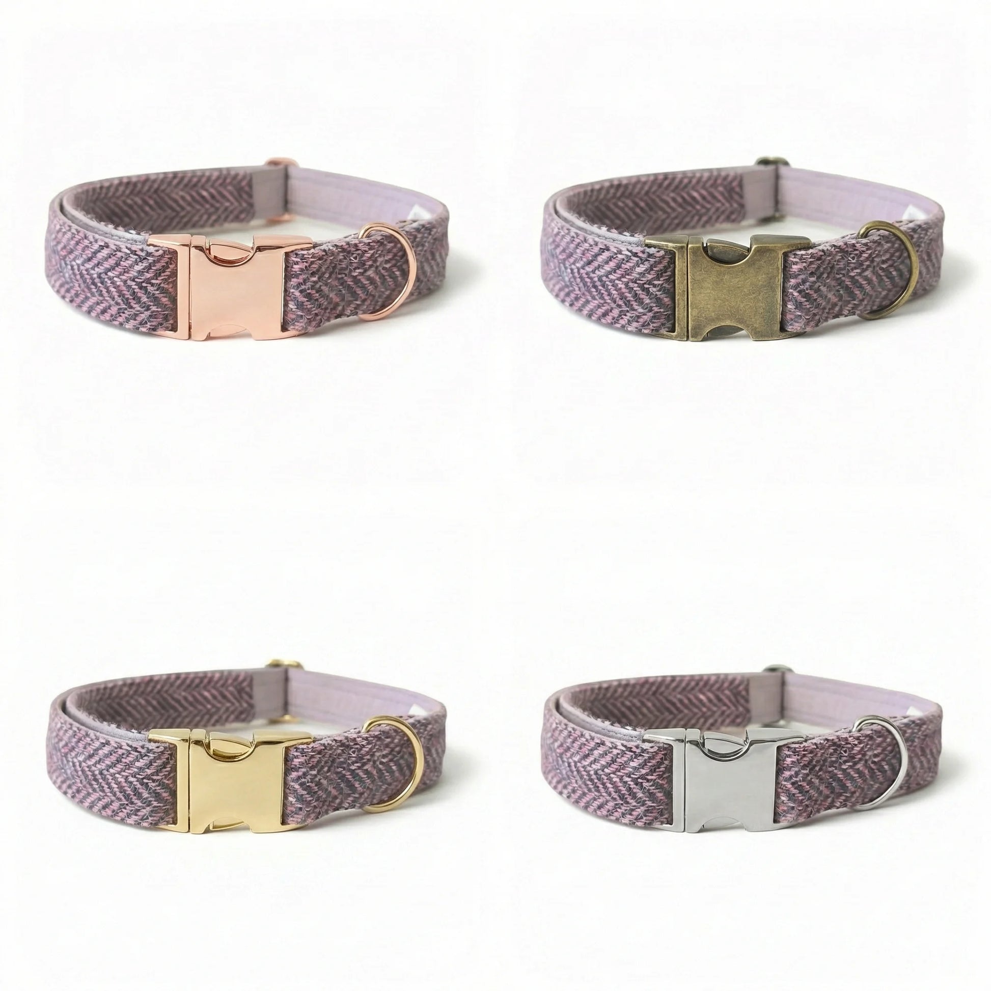 Zarte Fliedertöne gewebt mit sanften blauen Akzenten. Das fliederfarbene & blaue Harris-Tweed-Halsband mit Fischgrätenmuster wird in Yorkshire, England, unter Verwendung von echtem Harris Tweed handgefertigt, das auf den Äußeren Hebriden in Schottland hergestellt wird. Dieses Halsband wurde für Hunde entworfen, die sowohl Komfort als auch Stil verdienen. Es verbindet traditionelle Qualität mit Alltagstauglichkeit.