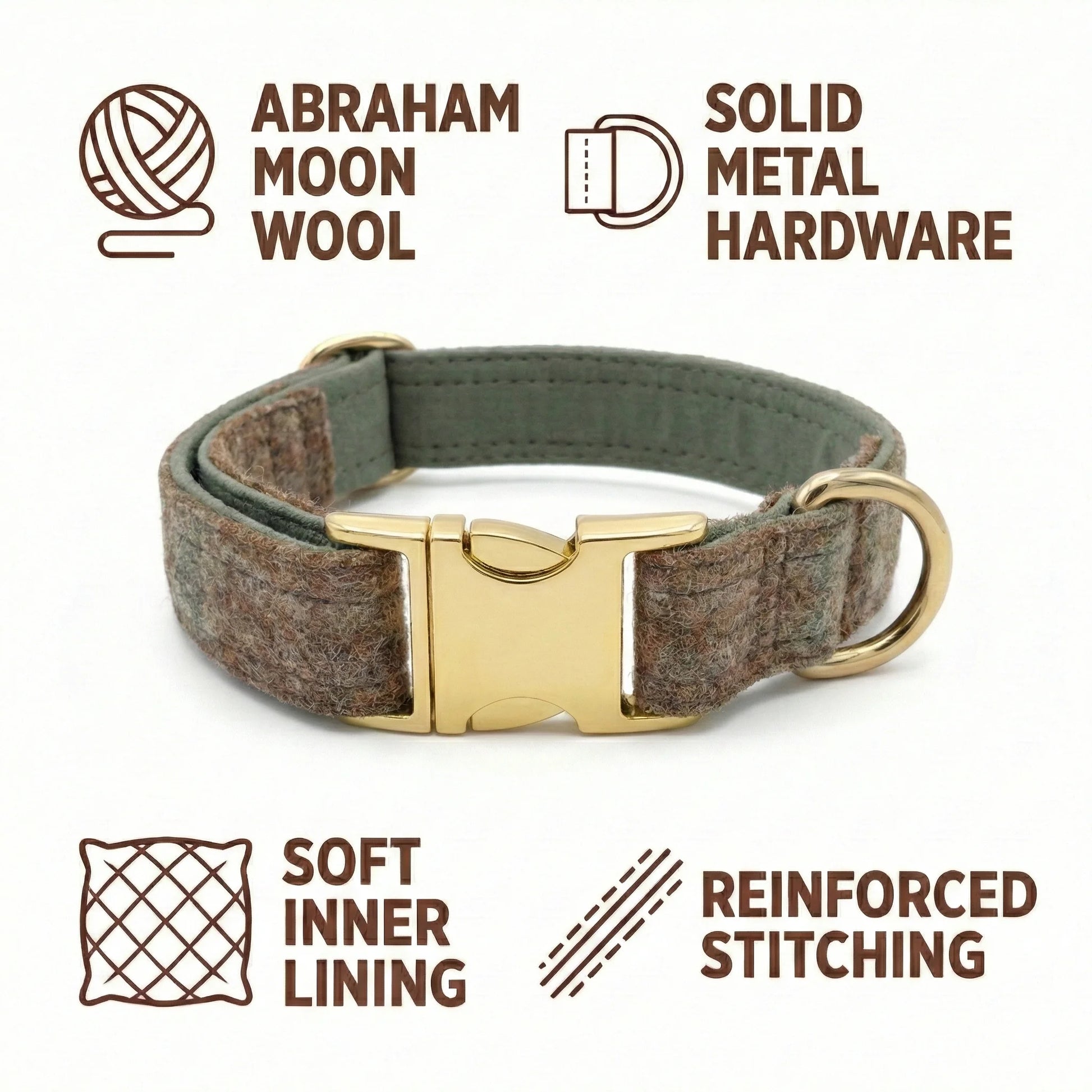 It’s premium wool fabric made to perform. Tough enough for the field, elegant enough for the lounge, and naturally equipped to handle the daily life of a dog collar.