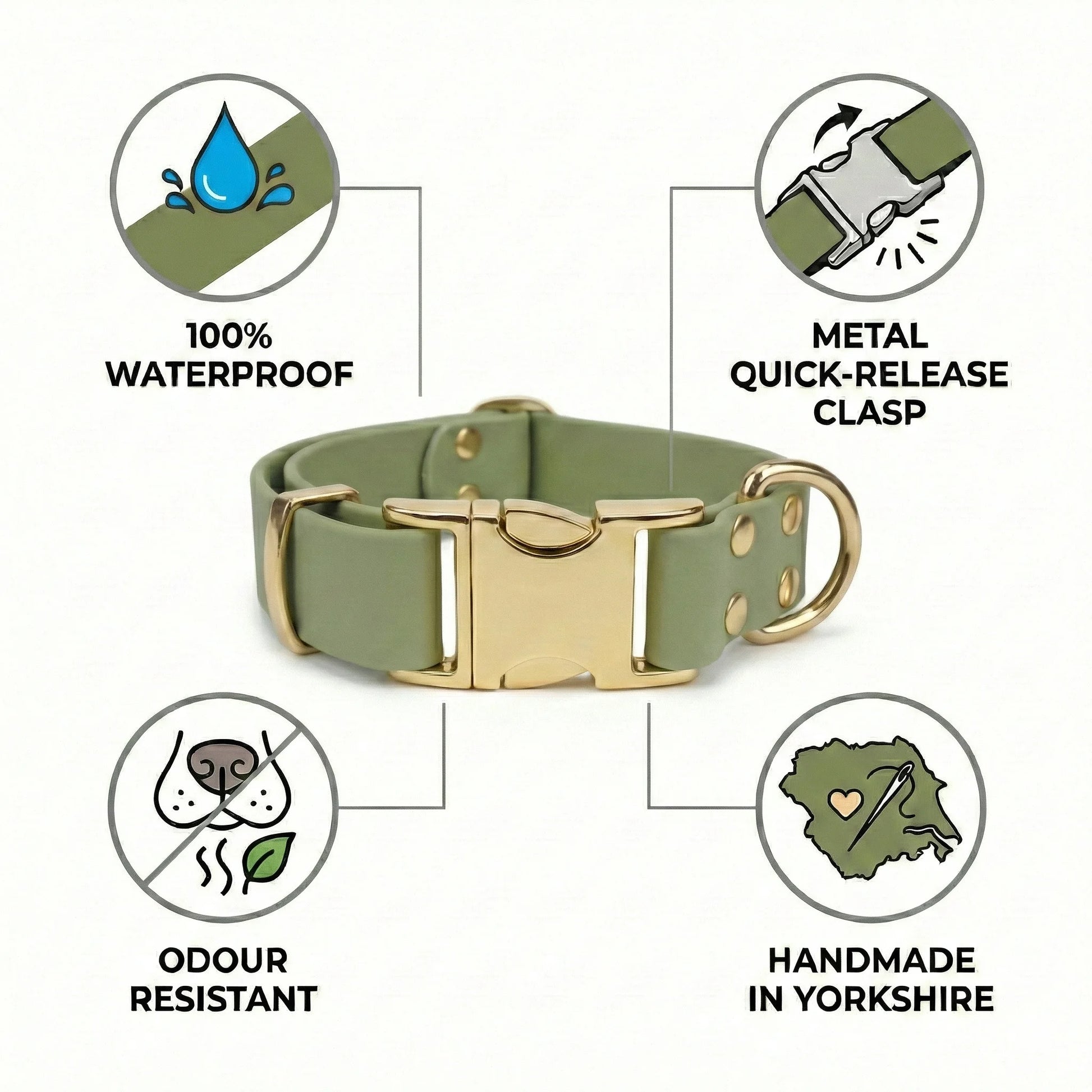 Guacamole Waterproof Biothane Metal Clasp Dog Collar – Handmade in Yorkshire
