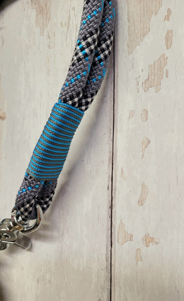 The product image of the collar and lead is finished Charcoal Grey and Dark Cyan whipping thread.