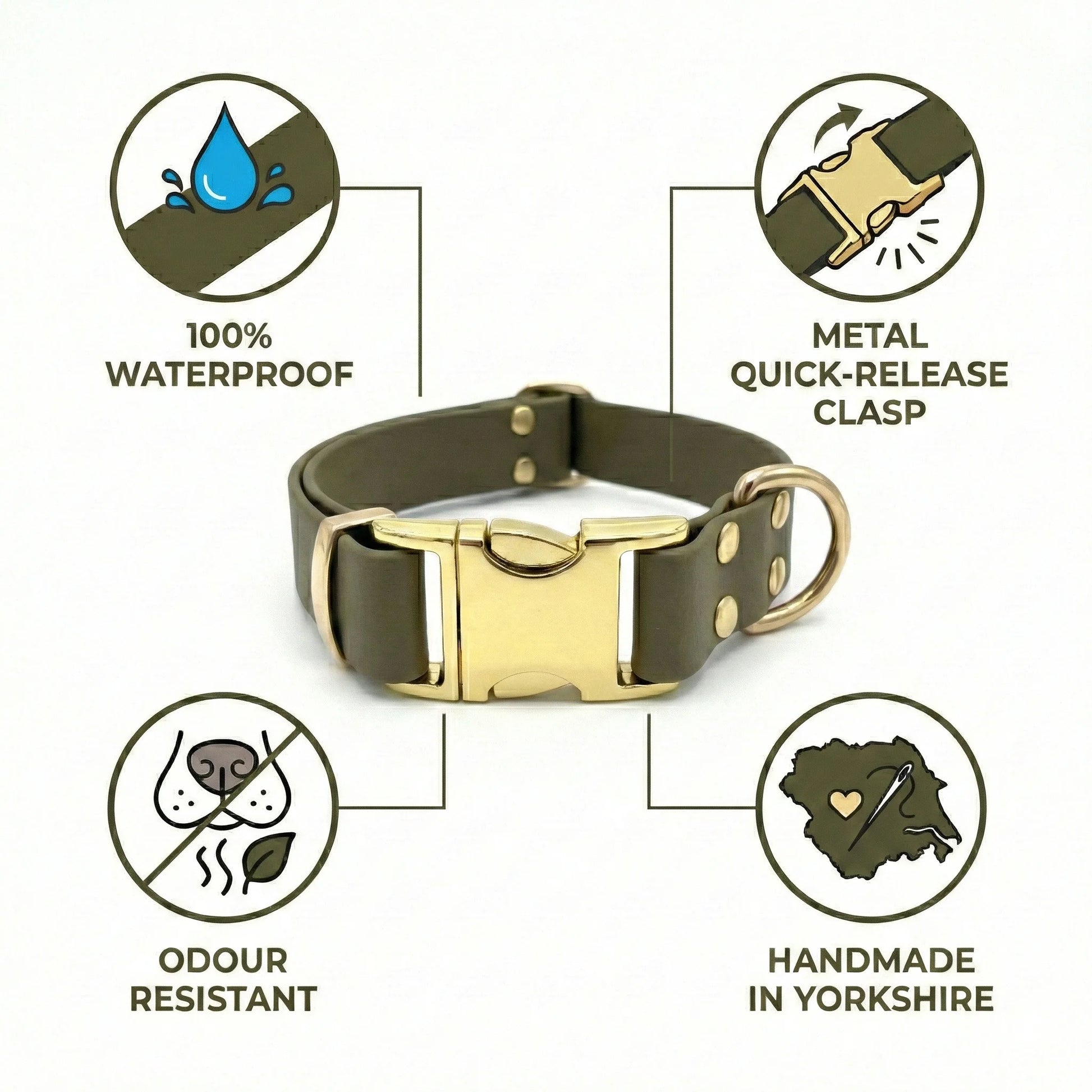 Olive Waterproof Biothane Metal Clasp Dog Collar – Handmade in Yorkshire