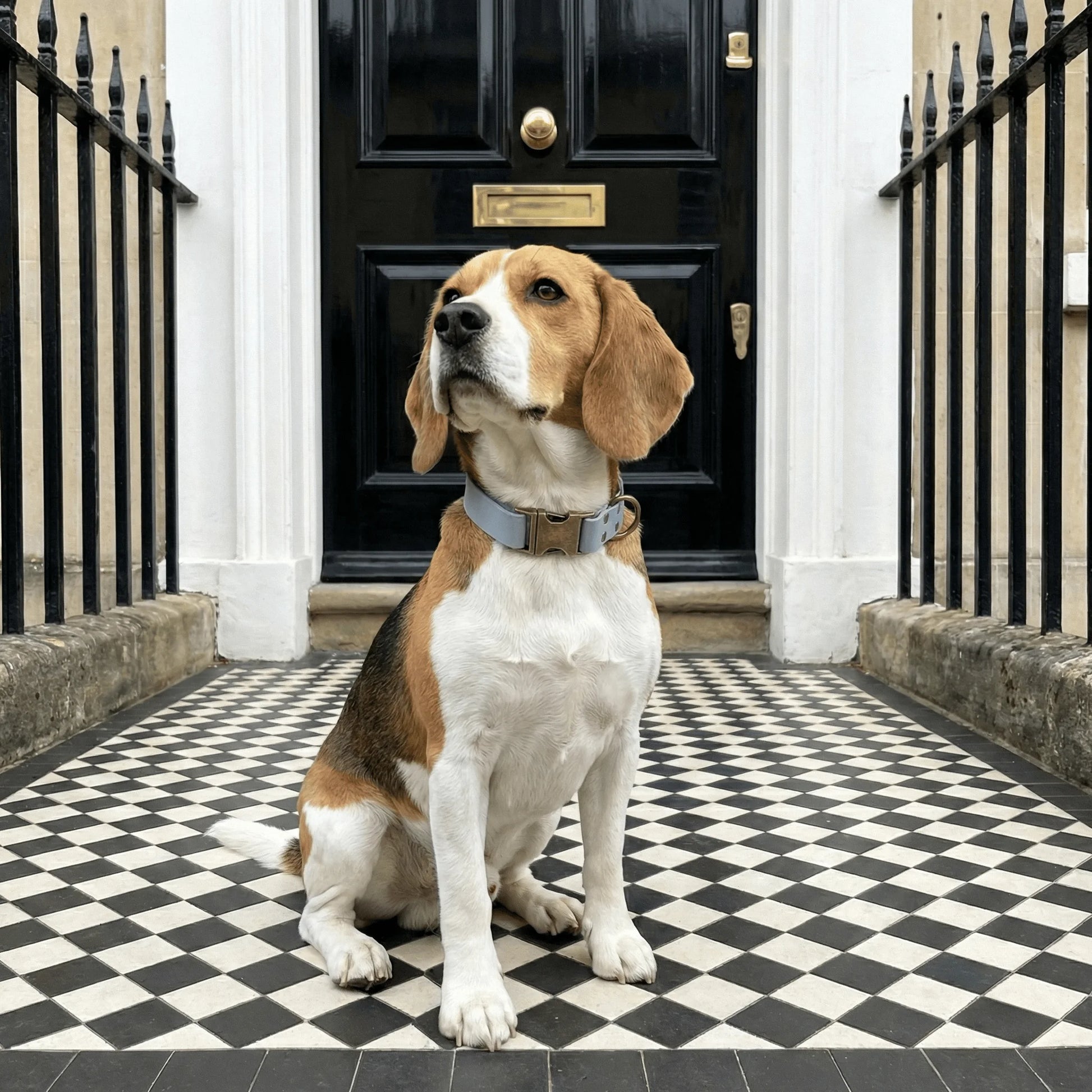 The Pastel Blue Waterproof Biothane Clasp Dog Collar is soft and calming, a gentle shade that suits both everyday walks and special outings. Handmade in Yorkshire, it combines lightweight style with waterproof durability.