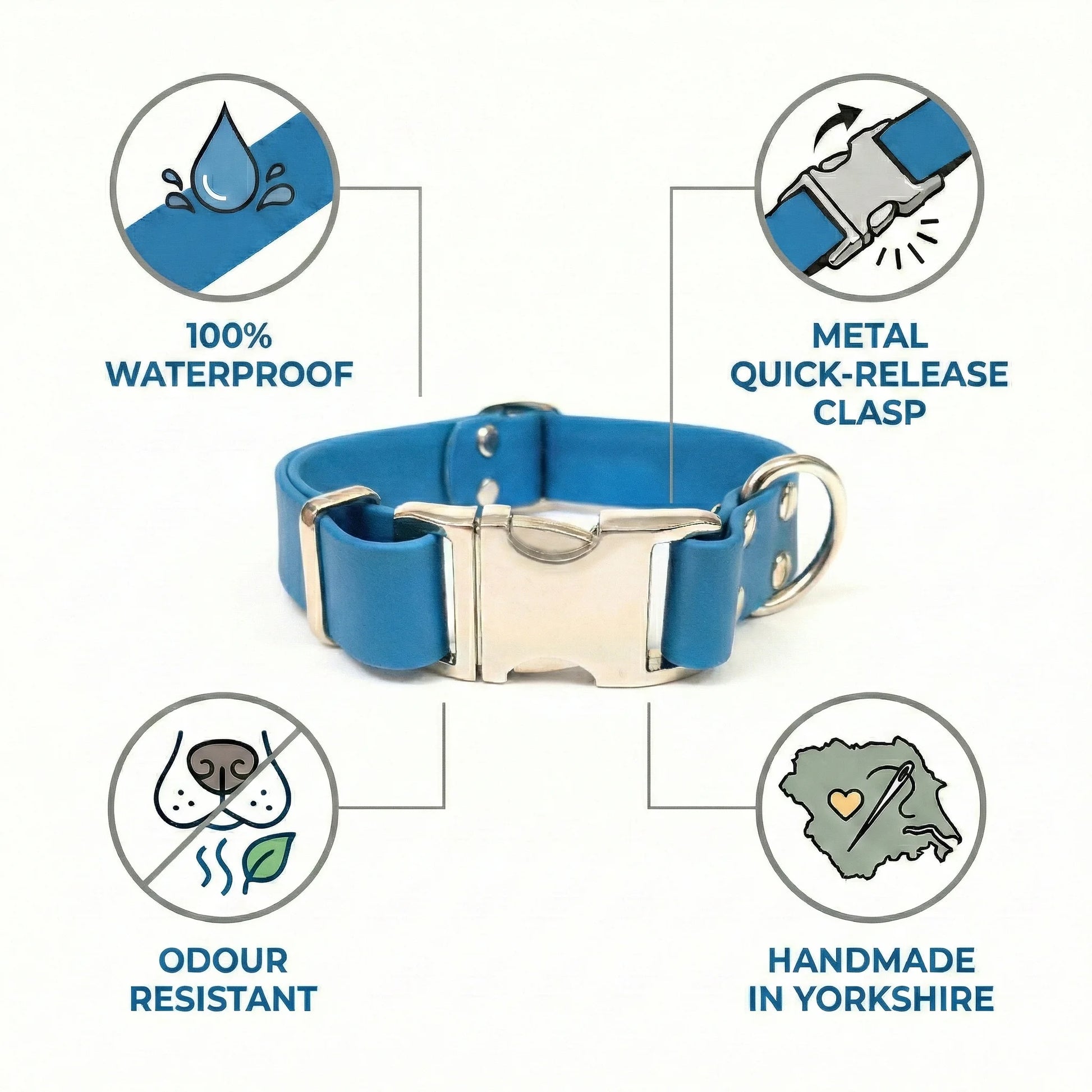 Turquoise Waterproof Biothane Metal Clasp Dog Collar – Handmade in Yorkshire